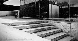 Left column: Ryoanji Temple, Kyoto. Right column: Mies van der Rohe, Barcelona Pavilion. First a flight of shallow steps.