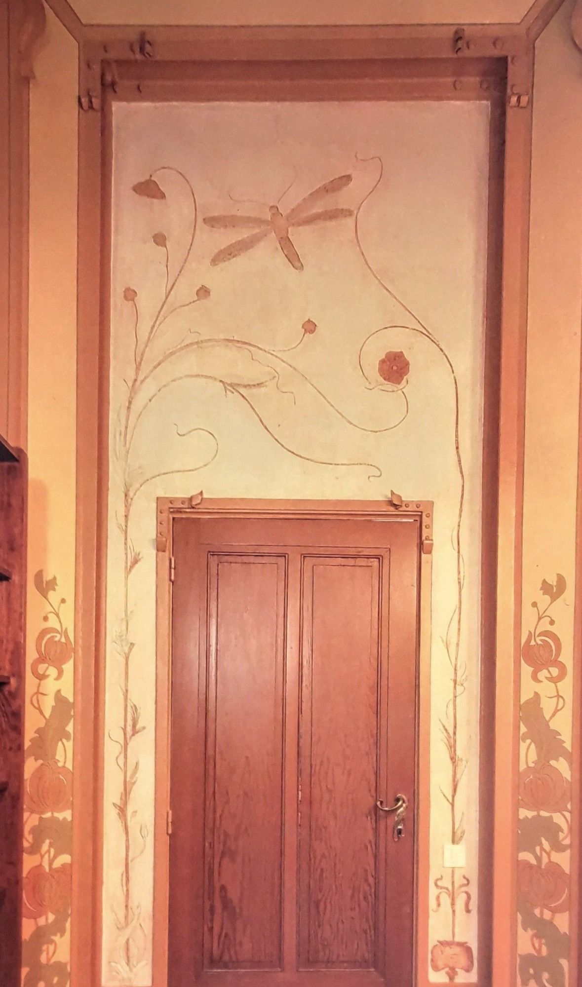 Below: The use of Japanese decorative motifs at the Hotel Tassel (1893). The use of insects for a variety of decorative purposes was common in Japan, and spread in Europe as part of the japonisme movement. Here, a brush and inkstone case cover by Nagano Oteki (active the late 18th and early 19th century) is shown to the right for comparison.