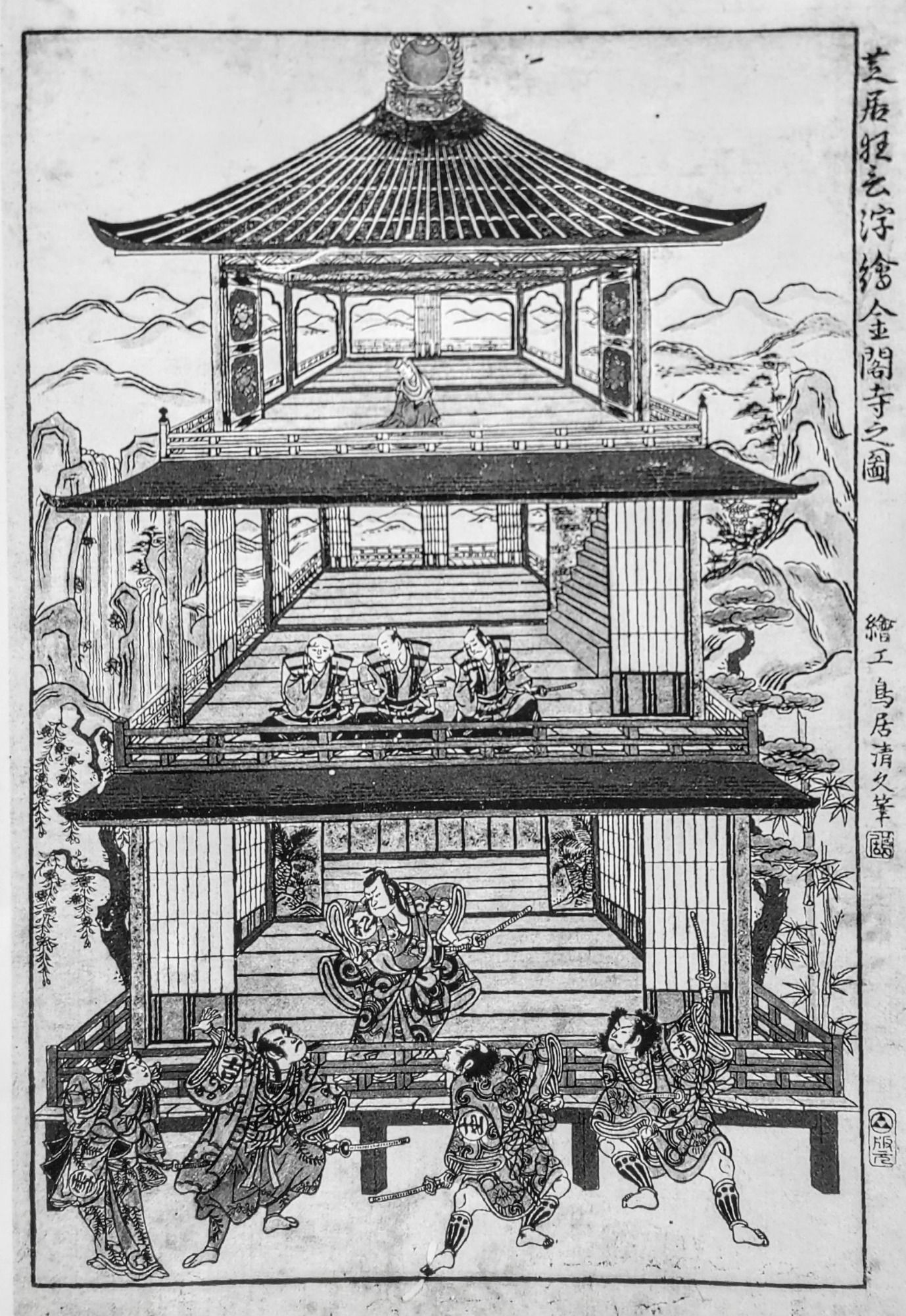 Starting in the early 1860's (1861-1864), at Chukushima (Hakodate, Hokkaido), Musashino Seijiro built a pleasure pavilion or 'giro' (妓楼), his 'Musashino-ro', a three storey building of which on the second floor roof a garden was built, depicted in Utagawa Kuniteru's print 'Hakodate Toyokawacho Musashino Sangaizukuri Zensei-no-zu' (1873), which even included a pond, and approximately covered a 100 square meters. It seems from this point on more and more roof gardens were built, and for foreigners as well, such as that of the importing and provisions company, Langfeldt & Mayers, in Yokohama (1881).