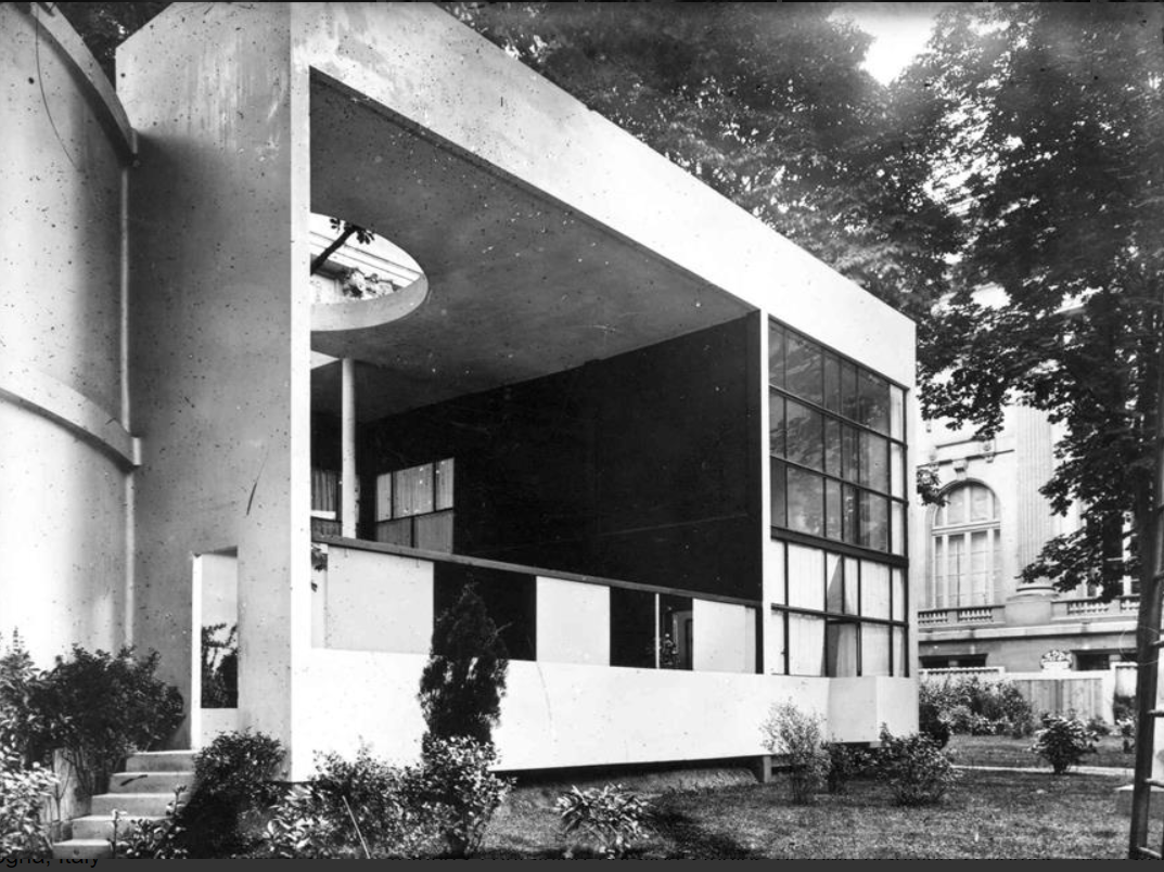 Not to call attention to these facts, and to avoid all mention of Japan in discussions of Le Corbusier's designs in Europe, would be much like describing architecture in Asia that was 1) centrally fronted with columns topped with a triangular decorative space above; 2) had equal length wings on both sides with walls punctuated by upright rectangular windows with thick decorative framing at equivalent intervals; 3) a symmetrical box type floor plan; 4) walled off rooms with openings only large enough for one person to pass through, equipped with newly named 'doh-ah' -- flapping, hinged planar devices to close rooms; and finally, 5) a basement pool -- something surely not a standard feature of Western architecture; and thereby tout it as a purely original conception of 5 key principles (and also thanks to it being constructed let let us say, in plastic rather than stone or concrete)!
