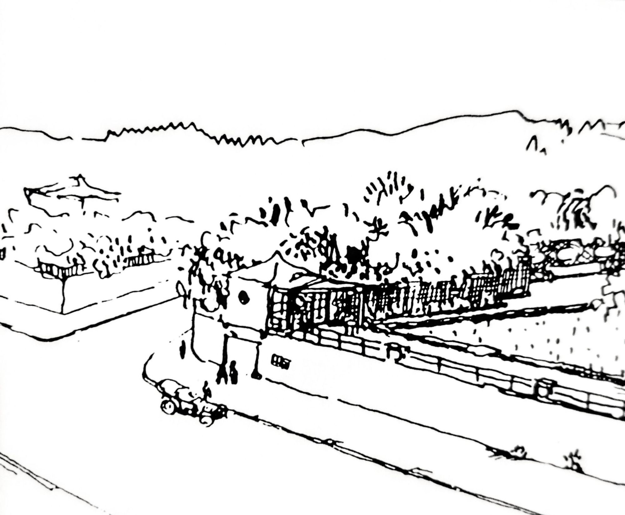 Take for instance, his sketches for the Eglise Saint Pierre at Firminy. This author only discovered the sketch shown below after seeing the completed building, but sensed the affinity to the cut bamboo form from the start; and sure enough, the earlier design of Le Corbusier's was closer to the 'archetypal' Japanese form. Furthermore, the same shape appears elsewhere, as on the top of his Chandigarth Assembly, even more faithful to the cut-bamboo form.