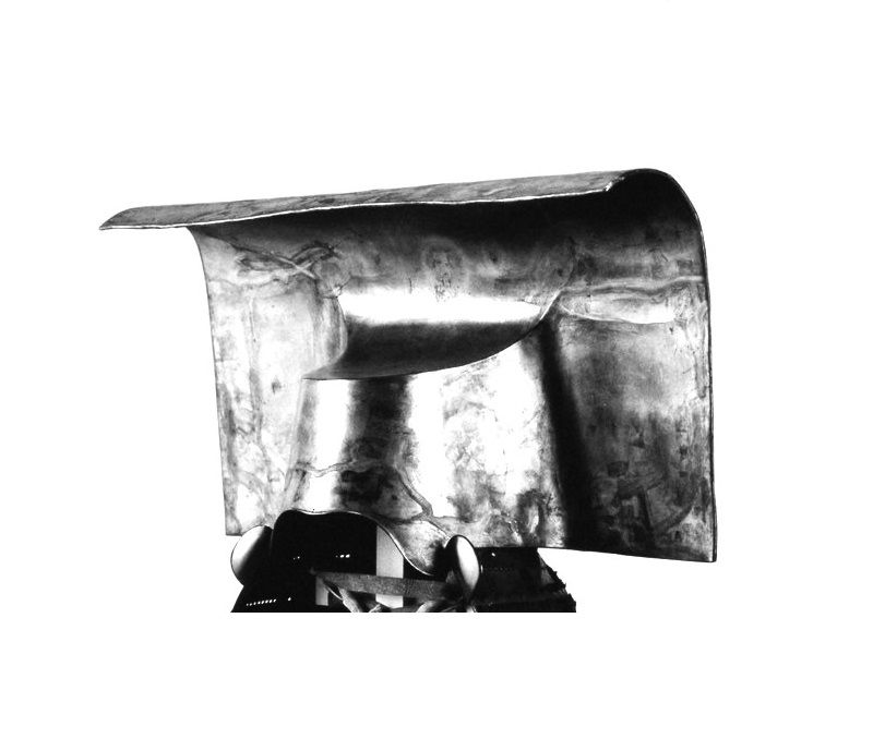 Below: 'Kuro Urushi Nuri Shukongousho Nari Kabuto' (黒漆塗執金剛杵形兜 Black urushi helmet in the shape of an arm holding the vajra, diamond thunderbolt, of the deity Shukongou), 17th century, Yasukuni Shrine Collection. Made using the harikake (張掛け)method, in the shape of an arm of the Deva King Shugongo, symbolizing the power in Buddhism, holding the pestle shaped vajra with 5 prongs which destroy evil. It must have made a deep impression on friend and foe alike on any battlefield, as well as on any sculptor or architect who might behold it, and is older and more potent than Le Corbusier's Open Hand Monument at Chandigarh.