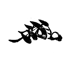 Designs with up cut pointed ends reminiscent of Japanese kao drawn with a brush