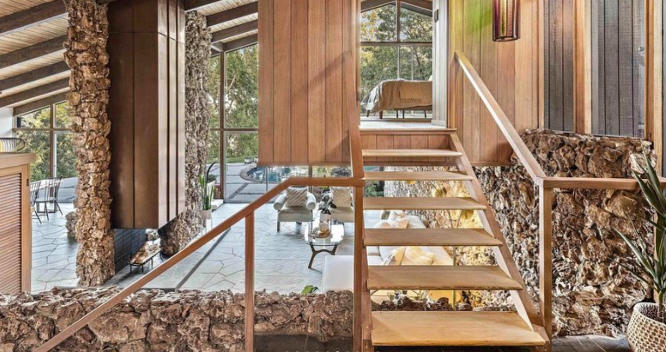 Known as the 'House of Balconies'. Skillfully incorporating conceptions of light clean, airy woodwork structures found with rough, natural stonework of Japanese country houses, such as in flood prone areas. Japanese influence is so widespread and an ingrained part of modern California design that it is indistinguishable in many cases to Californians who see it simply as 'Californian'. (Photo credits to be added.)