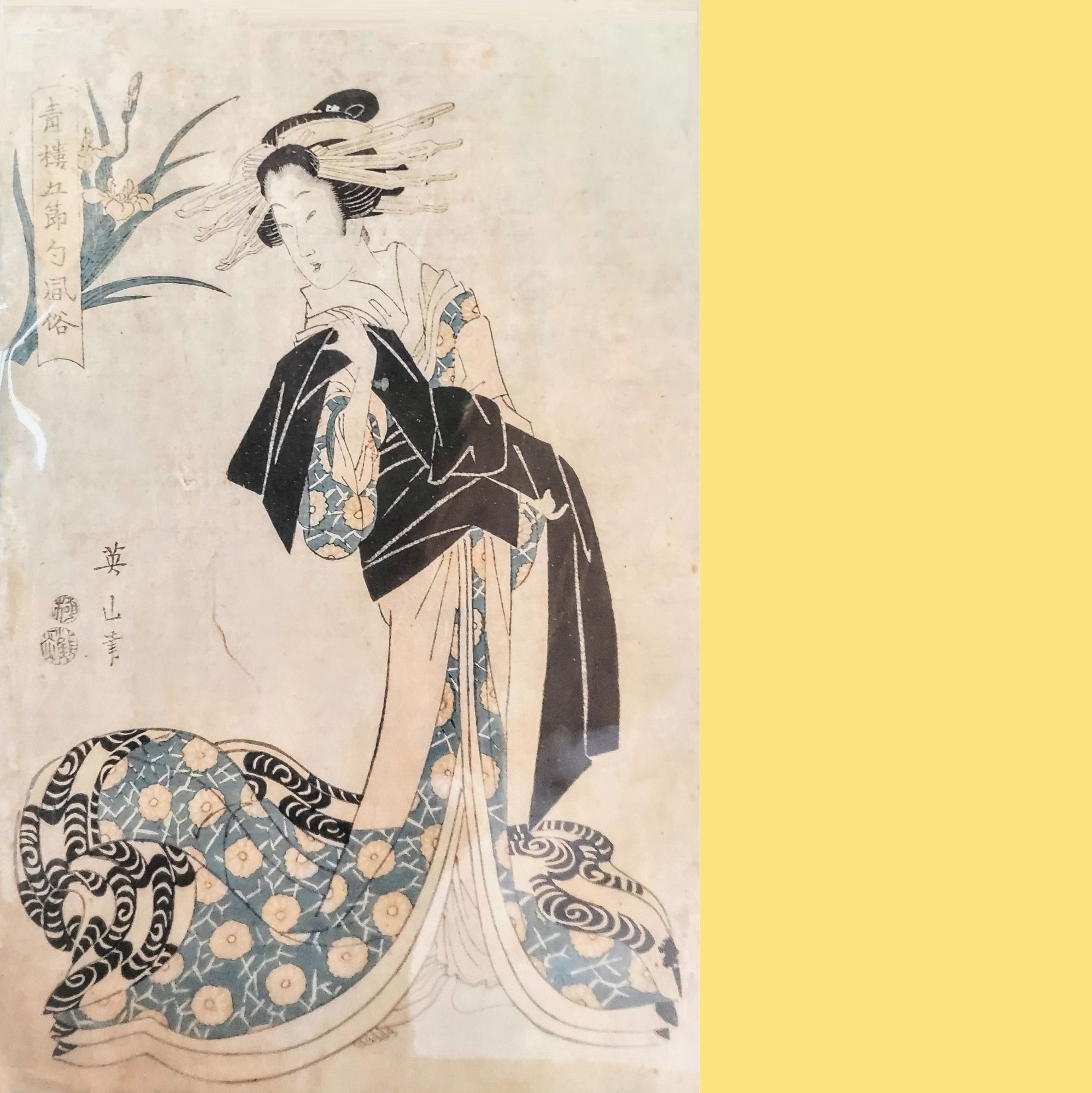 As in the case of Rossetti and Hodler, this image of Utamaro's women looking crossways to each other has somehow captured the imagination of artists in the West repeatedly. We can see traces here, not necessarily of this utamaro picture, but one of these types of pictures: the hair juttting out to the back, the long sleeves still barely discernable, though abstracted; and likewise obi like waist bulk; see how it is sandwiched between her arm and waist like the utamaro woman, bulky upfront;
