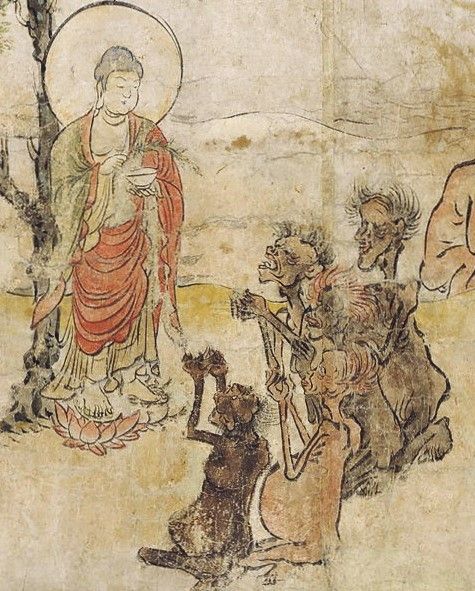 Below are more scenes from the 12th century Jigoku-zoshi (Hell Scroll) and Gaki-zoshi (Hungry Ghost Scroll), to give a taste of the kind of psychological characterizations and facial expressions that appear in that genre of art in Japan.